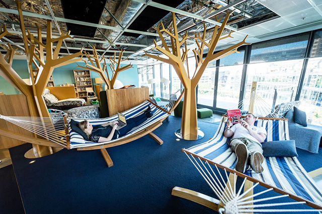 Contamos con distintas salas de trabajo adaptadas para tu comodidad. El sillón Zoco es el mueble principal en nuestro establecimiento. Tenemos salas con hamacas, puffs, y hasta suelo con arena. Para trabajar en equipo contamos con salas con mesas redondas y paredes de pizarrón para conseguir una mayor creatividad y mejor trabajo en equipo.